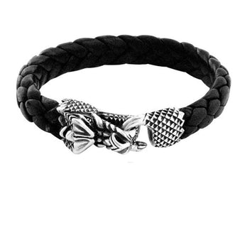 King Baby Leather Bracelet With Small Dragon Clasp in Sterling Silver