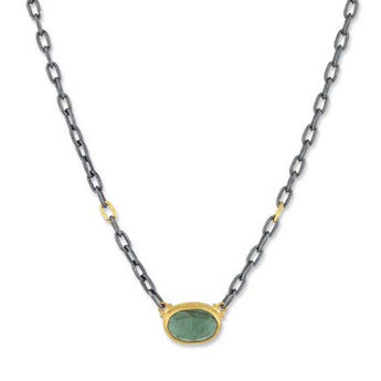Lika Behar Katya Green Tourmaline Pendant Necklace in Oxidized Sterling Silver and 24K Yellow Gold