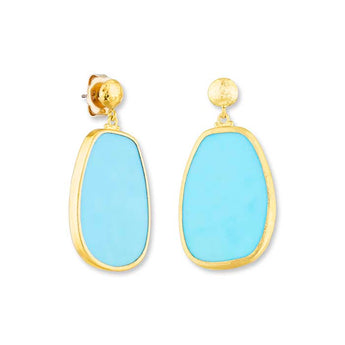 Lika Behar One of A Kind "My World" Kingman Turquoise Drop Earrings in 24K Yellow Gold