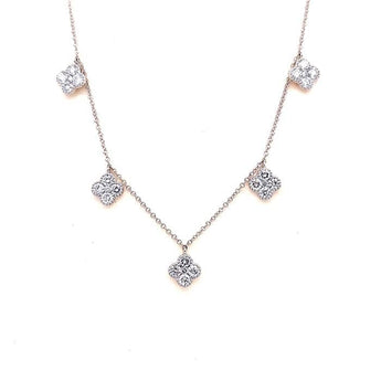 Mountz Collection 1.50CTW Clover Cluster Drop Necklace in 14K White Gold