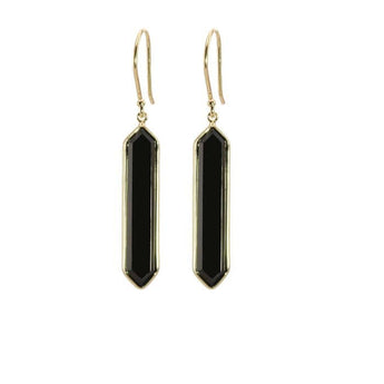 Mountz Collection Hexagon Shaped Onyx Drop Earrings in 14K Yellow Gold