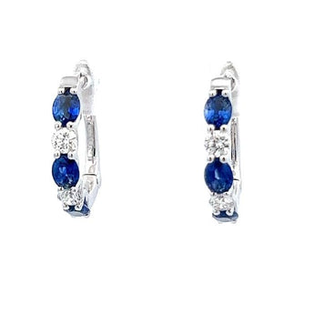 Mountz Collection Sapphire and Diamond Oval Hoop Earrings in 14K White Gold