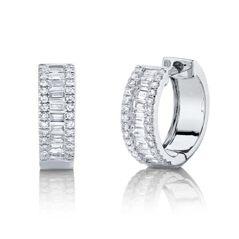 Shy Creation Baguette Diamond Huggie Earrings in 14K White Gold