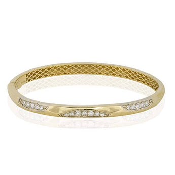 Simon G. Textured Oval Bangle with Diamond Accents in 18K Yellow Gold