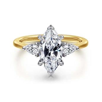 Gabriel & Co. "Sima" 3-Stone Marquise and Pear Diamond Engagement Ring Semi-Mounting in 14K White and Yellow Gold