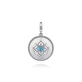 Gabriel & Co. Bujukan Medallion Pendant with Swiss Blue Topaz and White Sapphire in Sterling Silver