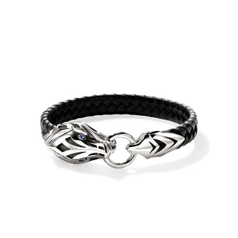 John Hardy 10MM Braided Black Leather Naga Bracelet in Sterling Silver