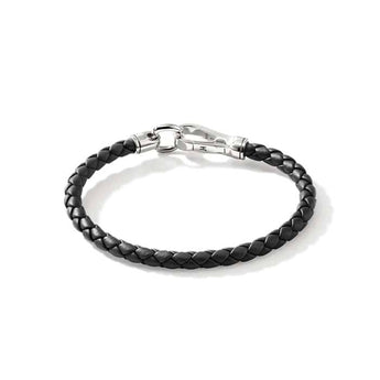 John Hardy 5MM Black Leather Hook Clasp Bracelet in Sterling Silver