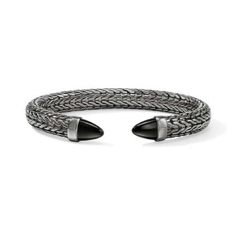 John Hardy Black Onyx Spear Flex Cuff in Black Rhodium Sterling Silver