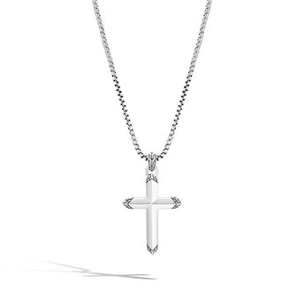 John Hardy Carved Chain Cross Necklace in Sterling Silver
