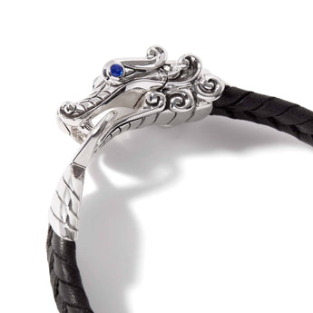 John Hardy Legends Naga Mens Bracelet in Sterling Silver and Black Leather