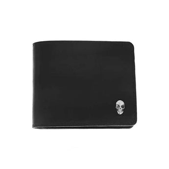 King Baby Bifold Wallet with Skull in Black Leather and Sterling Silver