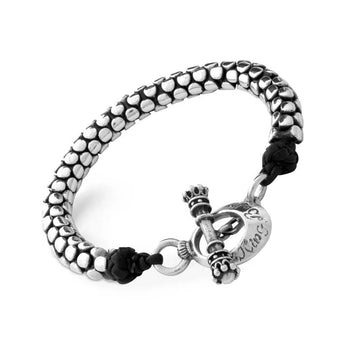 King Baby Snake Link Bracelet with Leather in Sterling Silver