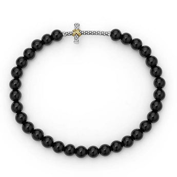 LAGOS Anthem Onyx Cross Beaded Stretch Bracelet in Sterling Silver and 18K Yellow Gold, Size Men's M
