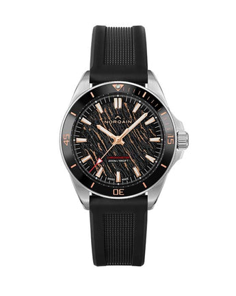 NORQAIN 40mm Adventure NEVEREST Glacier Automatic Watch with Black Glacier Dial in Stainless Steel and Red Gold, Rubber Strap