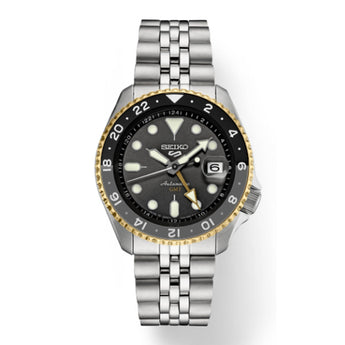 Seiko 42MM Charcoal Gray Dial 5 Sports SKX GMT Automatic Watch in Two-Tone Stainless Steel