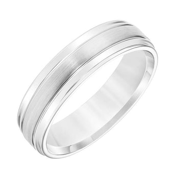 Goldman Men's 6MM Wedding Band with Brushed Finish and Polished Double Step Edge in 14K White Gold