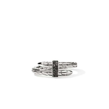 John Hardy Spear Single Wrap Ring with Black Sapphires in Sterling Silver