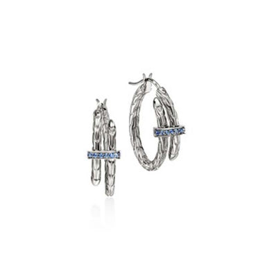 John Hardy Spear Hoop Earrings with Blue Sapphires in Sterling Silver