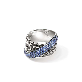 John Hardy Blue Sapphire Essential Crossover Pavé Ring in Sterling Silver, 12.5MM