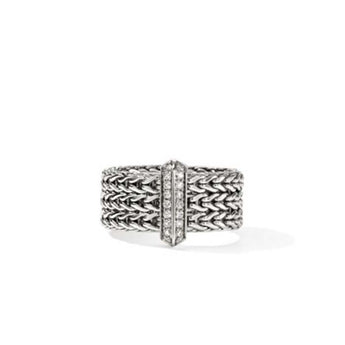 John Hardy Icon Link 9mm Diamond Bar Ring in Sterling Silver