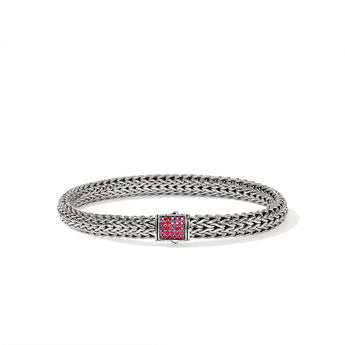 John Hardy Icon Small Classic Chain Bracelet with Treated Rubies in Sterling Silver