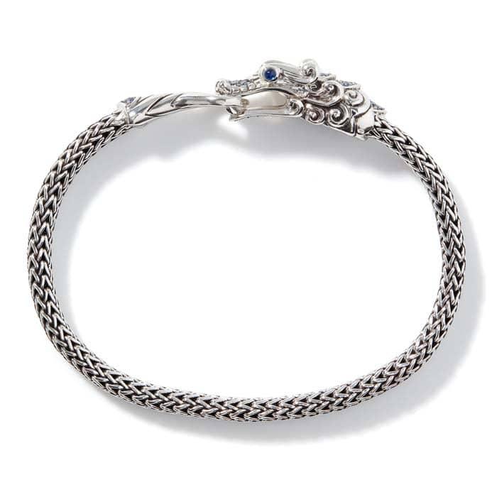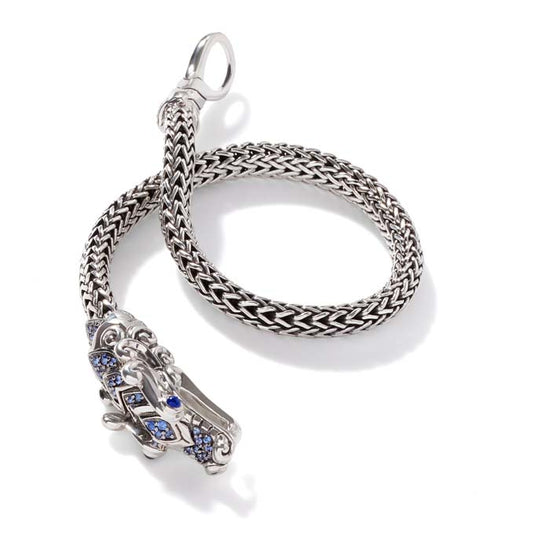 John Hardy Naga Bracelet with Blue Sapphires in Sterling Silver – Size Extra Large