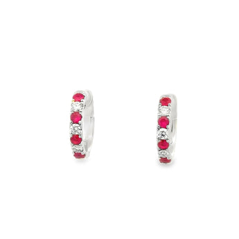 Mountz Collection Ruby and Diamond Hoop Earrings in 14K White Gold