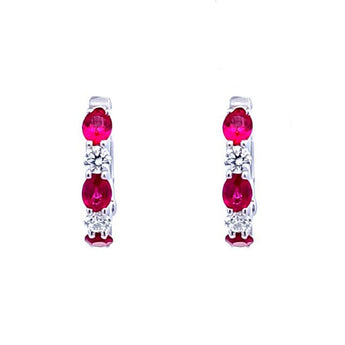 Mountz Collection Ruby and Diamond Oval Hoop Earrings in 14K White Gold