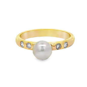 Estate Gray Pearl Ring with Diamonds in 14K Yellow Gold