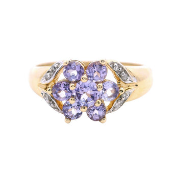 Estate Tanzanite and Single Cut Diamond Ring in 14K Yellow Gold