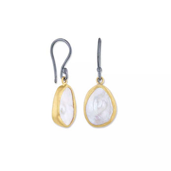 Lika Behar "Karin" Keshi Pearl Drop Earrings in 24K Yellow Gold and Oxidized Sterling Silver