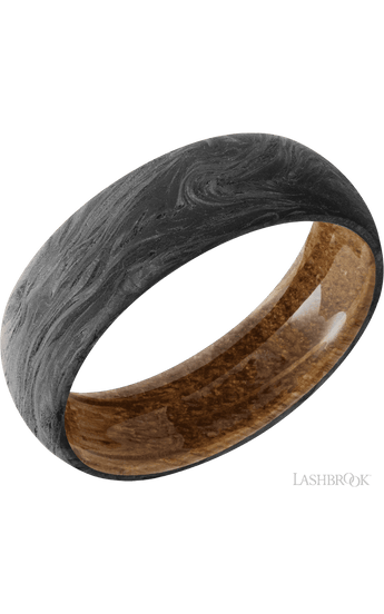 7 mm wide Domed Forged Carbon Fiber band featuring a Whiskey Barrel sleeve.