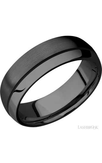 7 mm wide/Domed/Zirconium band with one 0.5 mm Off Center inlay of Black.