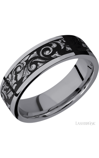 7 mm wide/Flat/Tantalum band with a laser carved Western Scroll pattern.