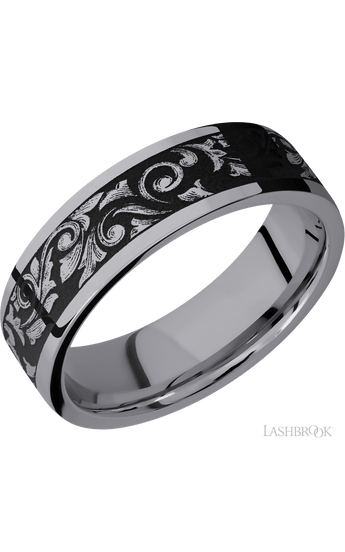 TA7F/LCVWESTERNSCROLL/A 7 mm wide/Flat/Tantalum band with a laser carved Western Scroll pattern.