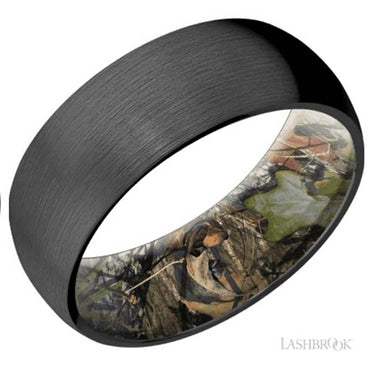 Lashbrook 8MM Domed Satin Zirconium Wedding Band with MossyOak Sleeve Call for Pricing /