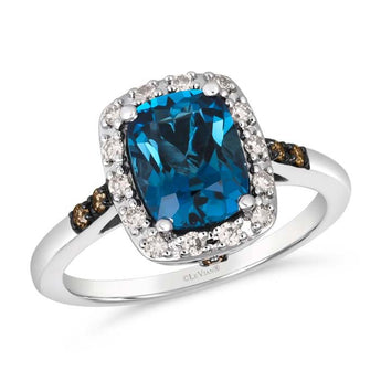 Le Vian Deep Sea Blue Topaz Ring with Vanilla & Chocolate Diamonds in 14K Vanilla Gold