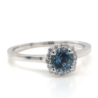 Mountz Collection Round Aquamarine Fancy Halo Ring in 14K White Gold