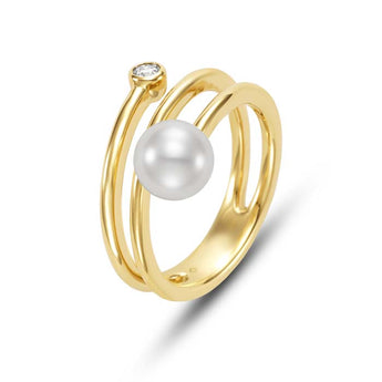 Mastoloni 7-7.5mm Freshwater Cultured Pearl 3X Spiral Bypass Ring with Bezel Set Diamond in 18K Yellow Gold