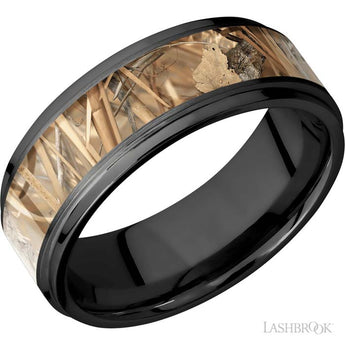 Lashbrook Mens 8mm Zirconium Wedding Band with 5 mm "King's Field" Camo Inlay