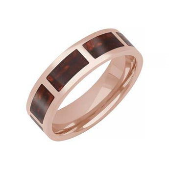 Goldman 6MM Flat Ladder with Ceramic Inlay Wedding Band in 14K Rose Gold and Pearl Red Ceramic