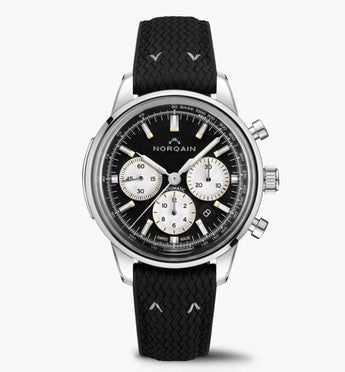 NORQAIN 43mm Freedom 60 Automatic Chronograph Watch with Black Dial and Perlon Rubber Strap in Stainless Steel