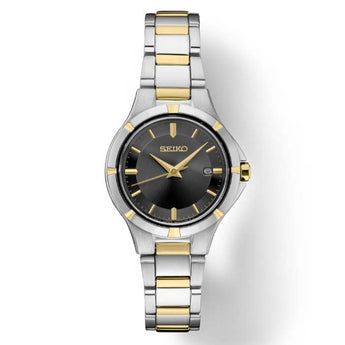 Seiko 27MM Essentials Collection Quartz Watch with Black Dial in Two-Tone Stainless Steel
