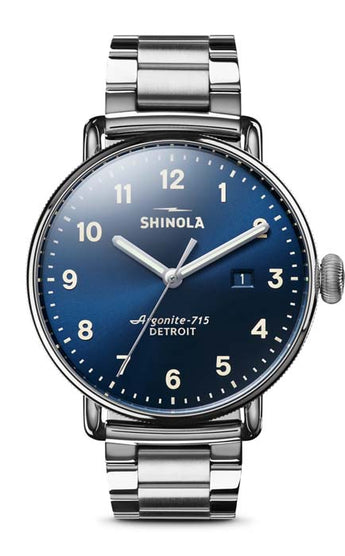 Shinola 43MM "Canfield" 3HD Watch with Midnight Blue Dial and Stainless Steel Bracelet