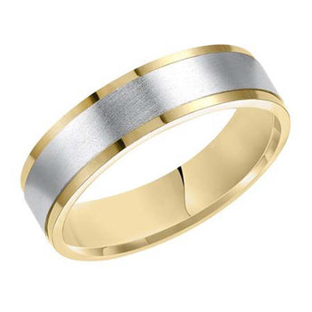 Goldman Men's 6MM Wedding Band Flat 14K Yellow Gold with Brushed 14K White Gold Center