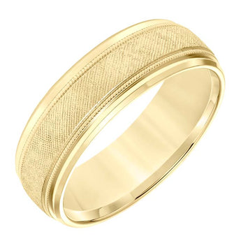 Goldman Men's 7MM Wedding Band with Florentine Finish and Milgrain Accents in 14K Yellow Gold