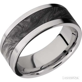 Lashbrook 8MM Flat Cobalt Chrome Wedding Band with 5MM centered inlay of Forged Carbon Fiber