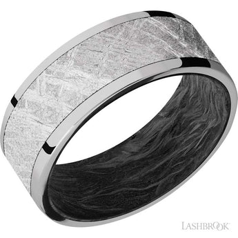 Lashbrook 8MM Flat Wedding Band in Titanium and Meteorite with Carbon Fiber Sleeve