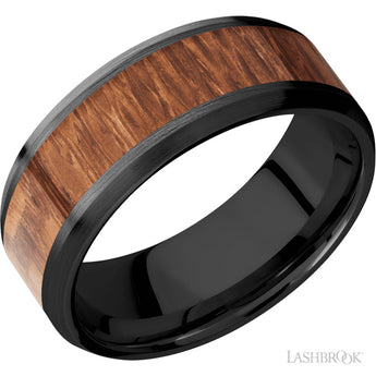 Lashbrook 8mm Zirconium Wedding Band with 5mm Leopard Wood Inlay